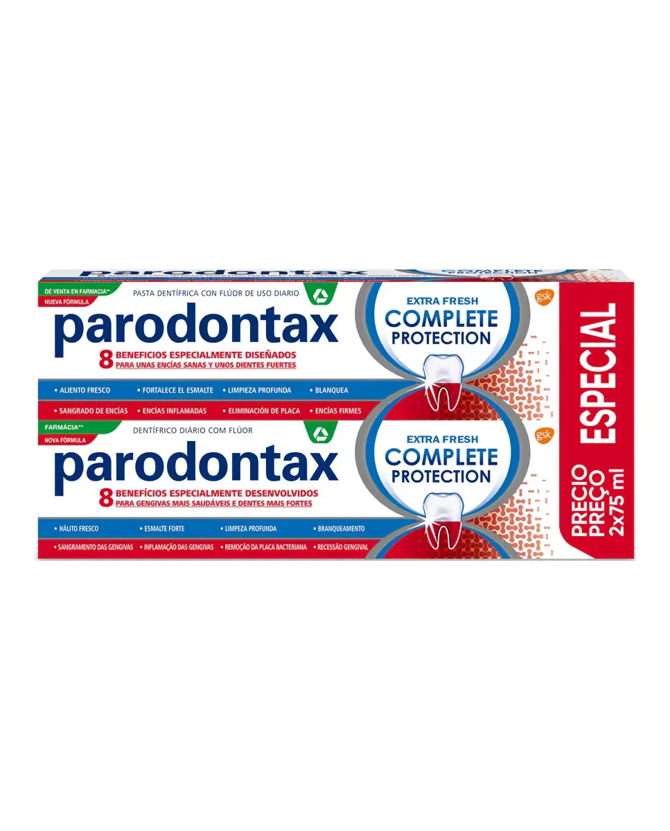 Зубная паста Parodontax Complete Protection Extra Fresh разработана для обеспечения комплексной гигиены полости рта, предлагая до восьми преимуществ для здоровья десен и прочности зубов. Эта формула предотвращает и останавливает кровоточивость десен, уменьшает покраснение и воспаление, а также в четыре раза эффективнее удаляет зубной налет по сравнению с обычными зубными пастами при использовании дважды в день. Она поддерживает уплотнение между деснами и зубами, борется с неприятным запахом изо рта, укрепляет зубную эмаль и глубоко очищает, обеспечивая мягкое отбеливание. Рекомендуется чистить зубы дважды в день и не более трех раз, избегая проглатывания пасты. Важно хранить продукт в недоступном для детей месте и не использовать его детям младше 12 лет, если это не рекомендовано стоматологом. Рекомендуется плотно закрывать крышку после каждого использования, чтобы защитить содержимое от влаги, и не использовать продукт sи уплотнение мундштука сломано или отсутствует.