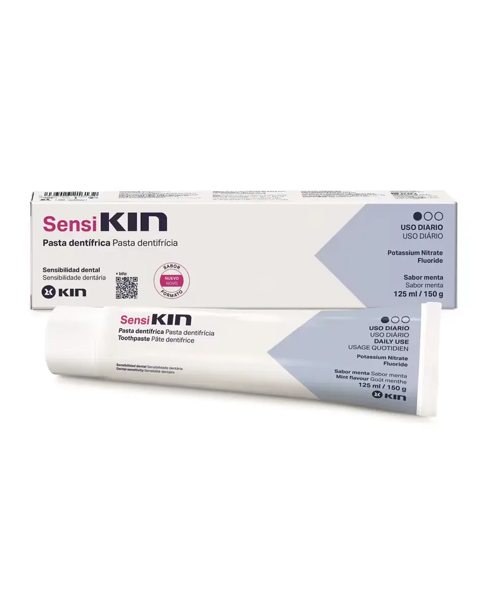 Зубная паста Sensikin от Kin разработана для борьбы с чувствительностью зубов. Она содержит калийный нитрат и фтор, которые помогают десенсибилизировать нервы пульпы зуба и удаляют зубной биопленку, способствуя надлежащей гигиене полости рта. Эта зубная паста способствует поддержанию здоровья десен и предотвращает кариес. Это унисекс-продукт, без глютена и лактозы. Ее следует держать в недоступном для детей месте и она не предназначена для проглатывания.