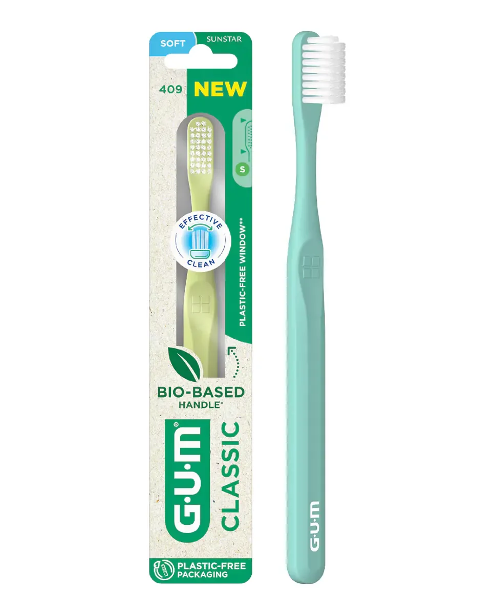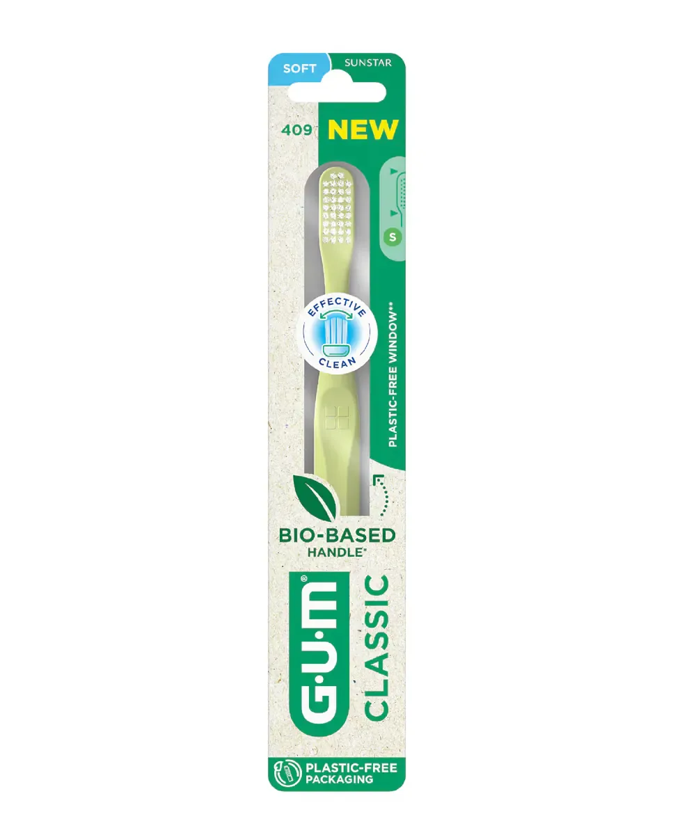 Зубная щетка Classic Suave от GUM предназначена для гигиены полости рта. Ее щетинки Dome-Trim позволяют глубоко очищать под линией десен, где скапливается налет. Рукоятка изготовлена из материала 100% биологического происхождения, что обеспечивает удобный захват и адаптируется к руке. Щетка представлена в упаковке без пластика, что способствует сокращению отходов и поддерживает более устойчивый уход за зубами. Это унисекс-продукт.