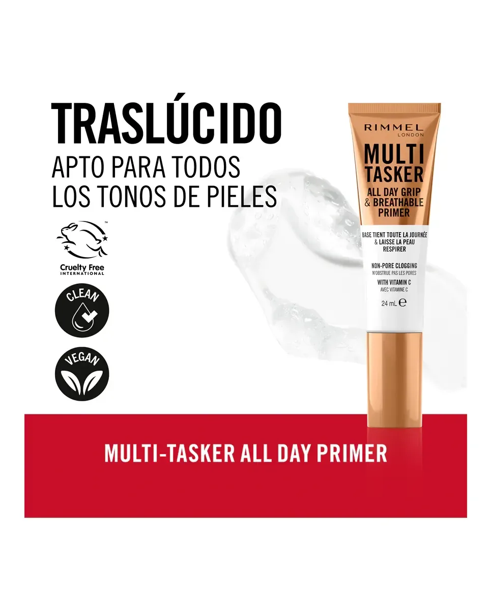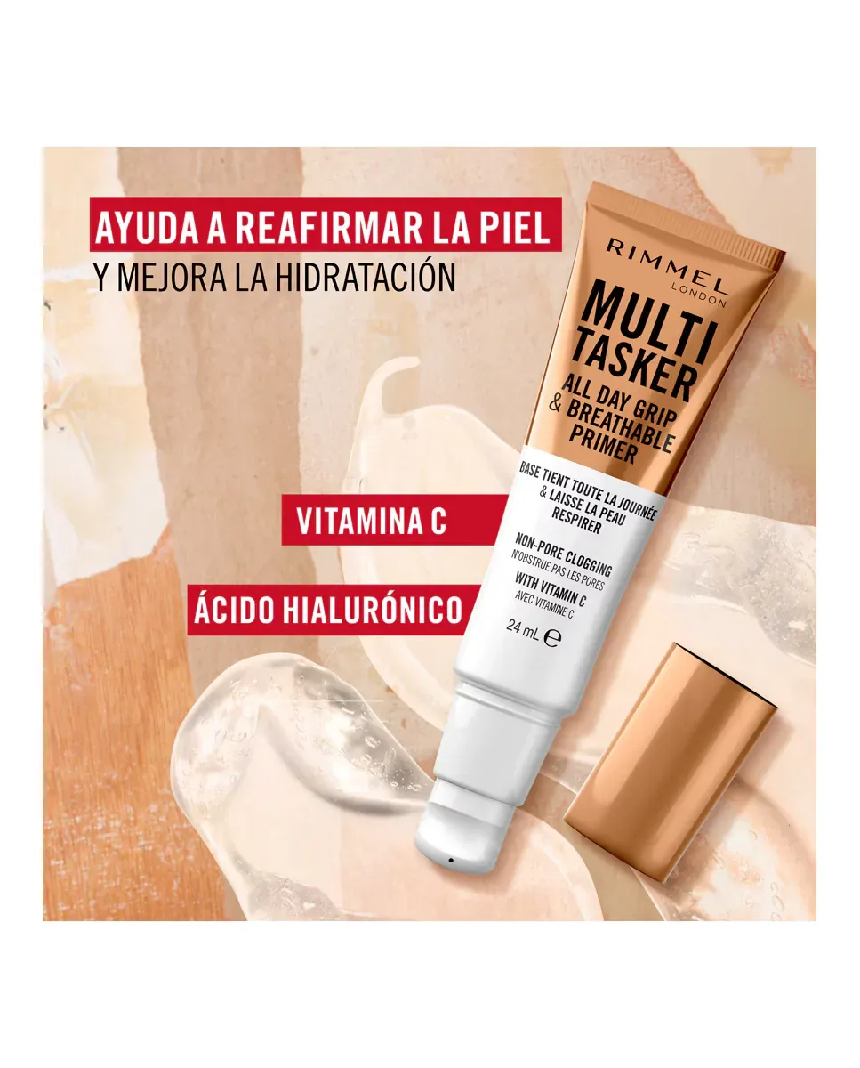 Многофункциональная праймер-основа Wake Me Up от Rimmel - это легкая основа с гелевой текстурой. Ее веганская формула включает витамин C и гиалуроновую кислоту. Подходит для всех типов кожи и для использования как мужчинами, так и женщинами. Этот продукт фиксирует макияж на целый день и обеспечивает выравнивающий эффект, который подчеркивает цвет лица. Также мгновенно увлажняет кожу и позволяет ей дышать, не забивая поры. Рекомендуется наносить на чистую кожу, начиная с центра лица и распределяя наружу.