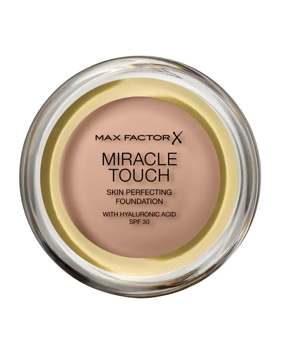 Тональная основа Miracle Touch Foundation от Max Factor превращает свою текстуру из твердой в жидкую при контакте с кожей, что позволяет легко и равномерно наносить средство. В состав формулы входит гиалуроновая кислота, которая помогает поддерживать увлажнение кожи. Включает солнцезащитный фактор 30, который защищает кожу от вредного воздействия солнца. Обеспечивает среднее покрытие и матовое финишное покрытие, гарантируя, что кожа будет выглядеть идеально в течение всего дня.