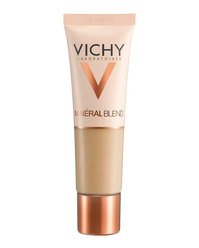 Минеральная основа для макияжа MineralBlend от Vichy - это увлажняющий продукт, предназначенный для всех типов кожи. Его жидкая формула обеспечивает естественный эффект, выравнивает тон кожи и корректирует несовершенства, оставляя ощущение свежести. Обогащенная минерализованной водой Vichy, натуральной гиалуроновой кислотой и минеральными пигментами, эта основа увлажняет кожу и придает ей сияние и объем. Ее текстура сливается с лицом, обеспечивая естественное и стойкое покрытие, которое держится до 16 часов и помогает скрыть признаки усталости и мелкие недостатки. Легко наносится пальцами, спонжем или кистью, равномерно распределяясь от центра лица наружу и растушевываясь к шее для плавного перехода.