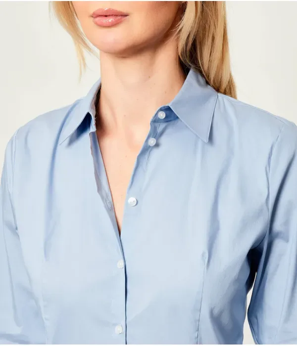 В рамках этого предложения вы можете приобрести: приталенную рубашку. В нашем ассортименте также представлены другие товары. Рост модели 178 см, размер одежды 36.