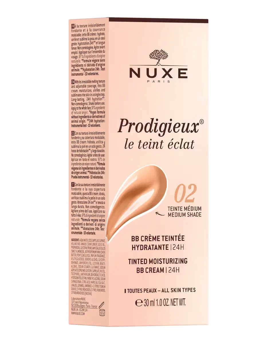 BB-крем Prodigieux 24H от Nuxe - это средство для совершенствования кожи, которое обеспечивает увлажнение, выравнивание и преображение кожи в течение 24 часов. Этот уход предназначен для моментального эффекта сияющей кожи и подходит для всех типов кожи. Он представлен в виде BB-крема, который наносят, выдавливая небольшое количество продукта и распределяя его легкими похлопывающими движениями по центру лица, постепенно растягивая к внешним сторонам и шее, чтобы избежать эффекта маски. Также его можно смешивать с дневным кремом Nuxe для более легкой финишной текстуры. Продукт универсален и подходит для обоих полов.