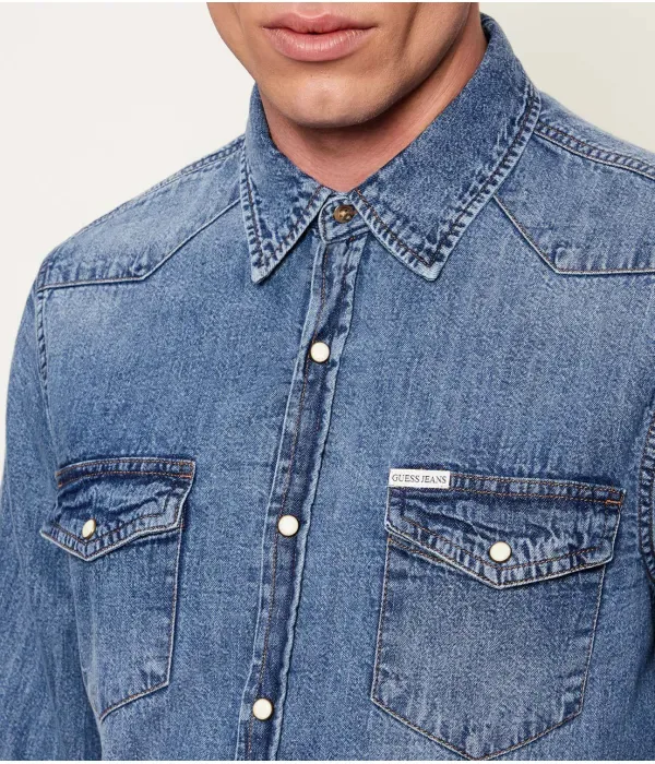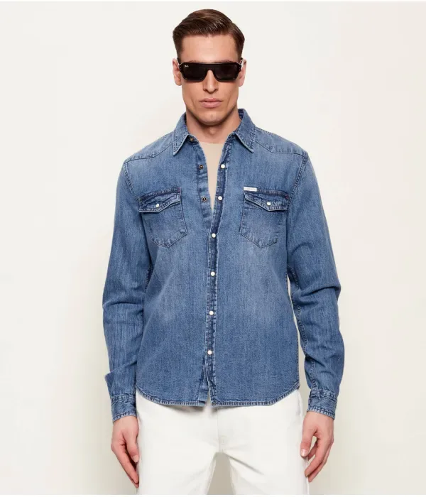 Джинсовая рубашка slim fit Guess Jeans, синий