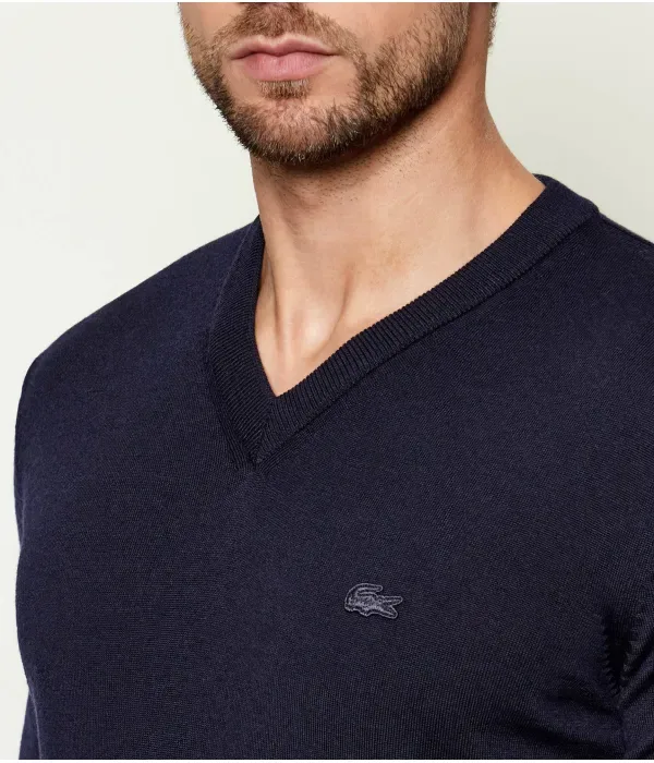 Шерстяной свитер regular fit Lacoste, темно-синий