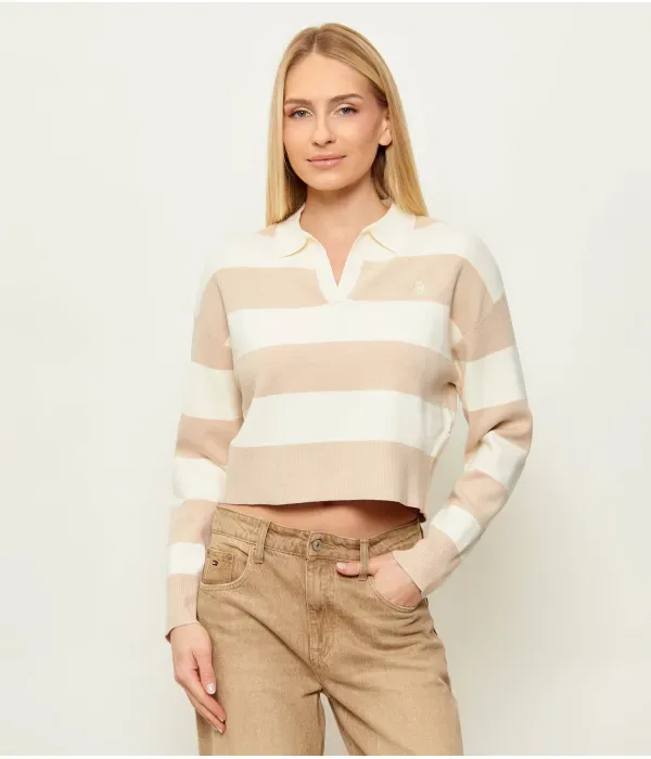 Свитер cropped fit Guess Jeans, бежевый