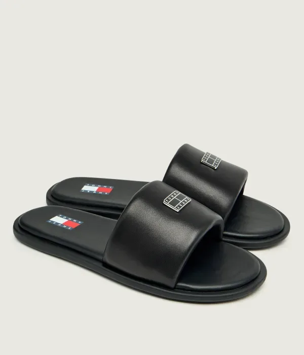 Кожаные тапочки Tommy Jeans, черный