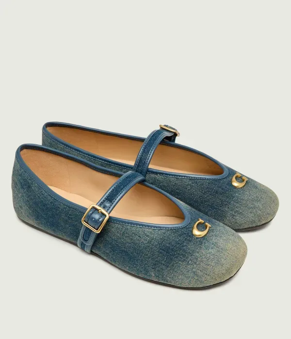 Рельефные джинсовые балетки Coach, темно-синий