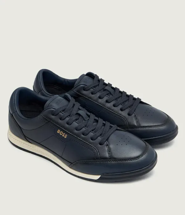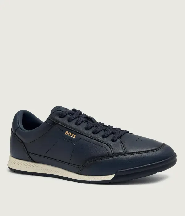 Кожаные кроссовки Nitan_Lowp_bu Boss, темно-синий