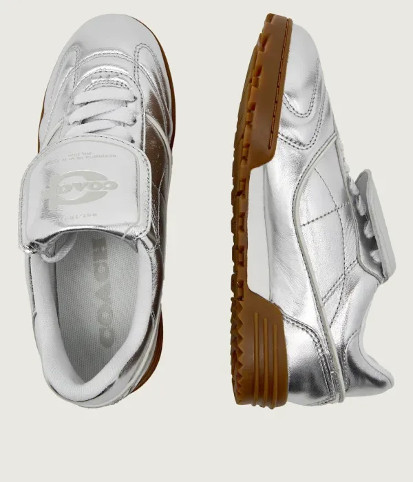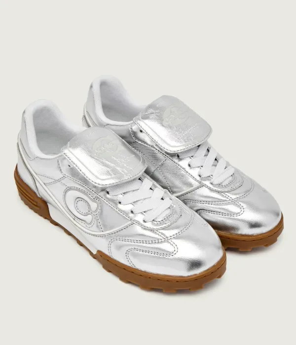 Подходящие кожаные кроссовки Coach, серебро