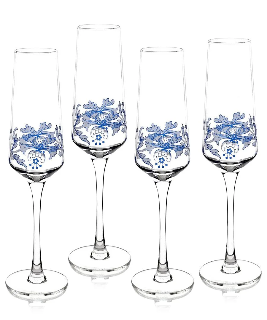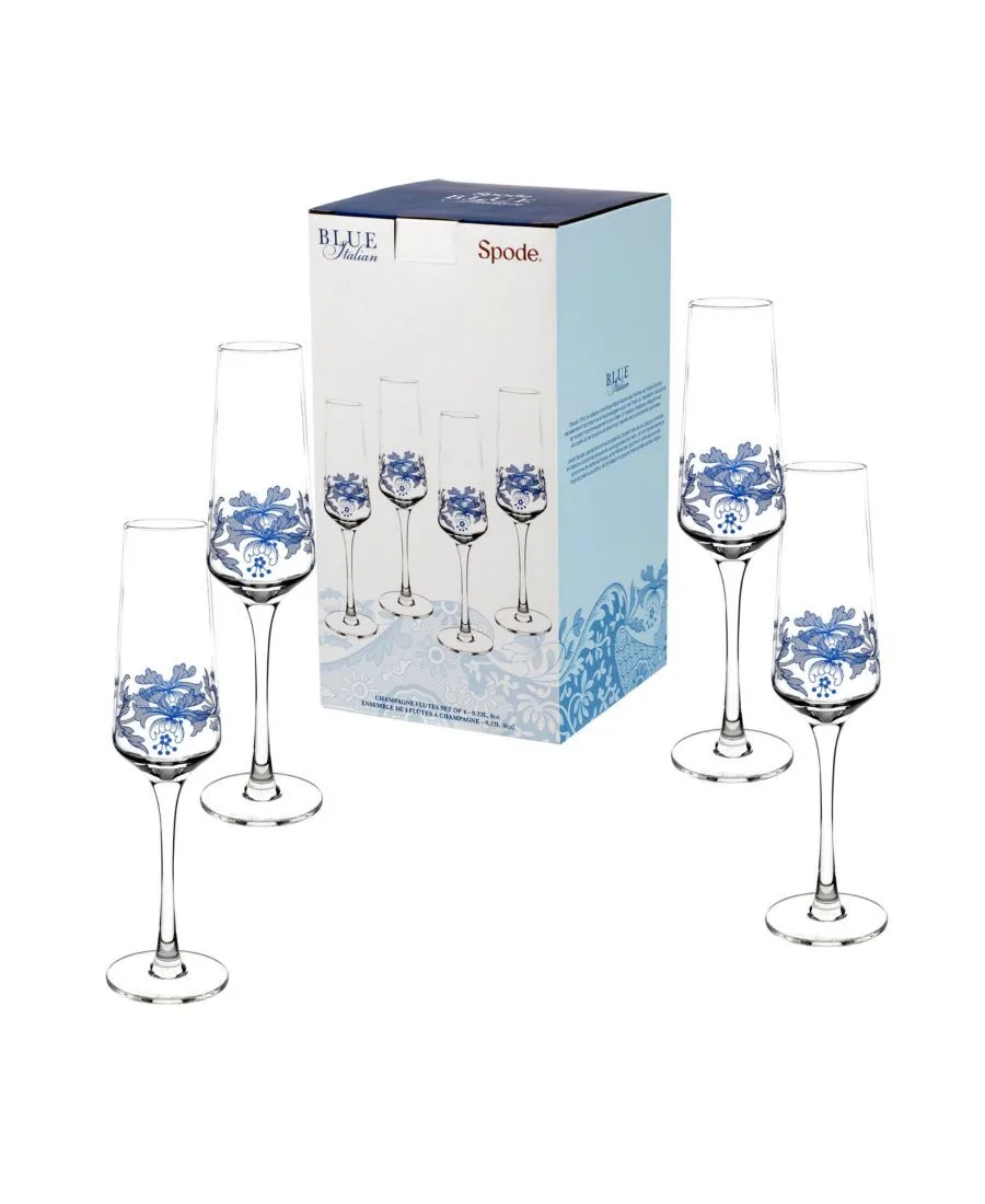 Набор из 4 итальянских бокалов для шампанского голубого цвета Spode