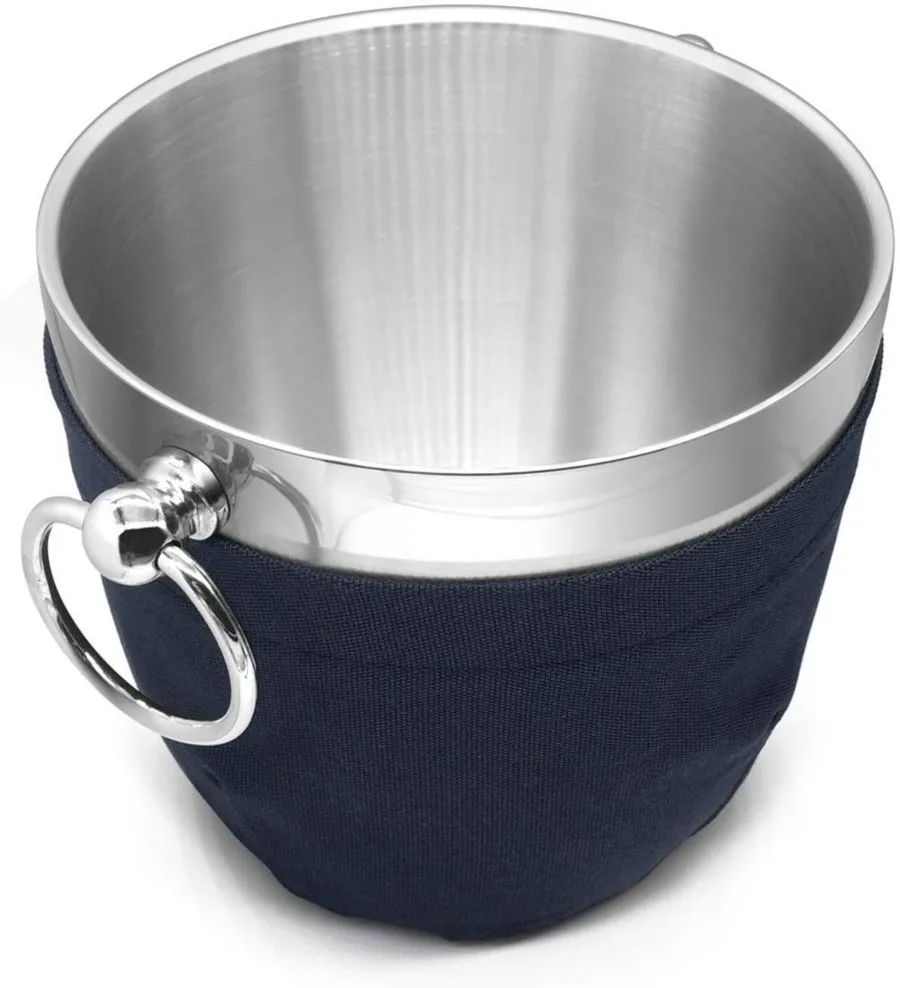 Ведро для льда из нержавеющей стали с двойными стенками, щипцами для льда, ручкой для переноски и эксклюзивным водонепроницаемым нейлоновым чехлом для сбора конденсата. Объем 2,8 литра.