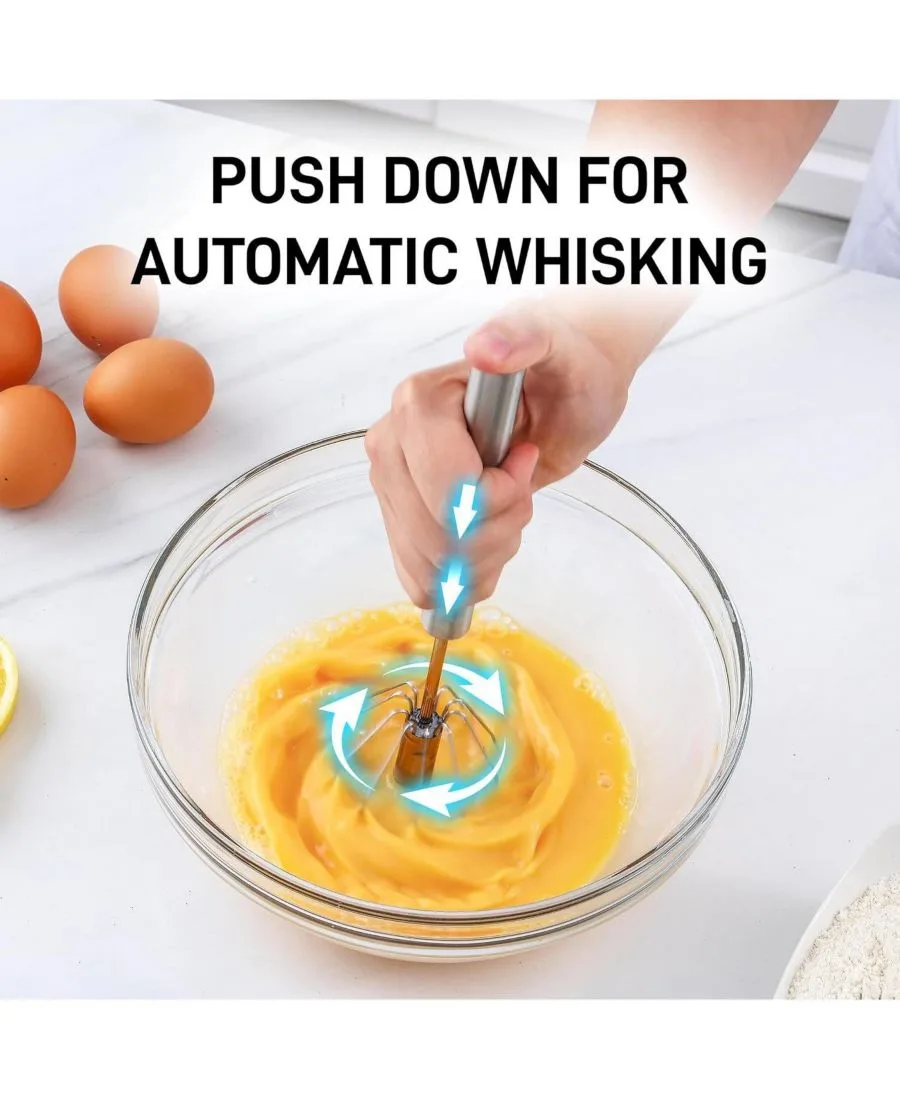 Наш венчик с полуавтоматической конструкцией и пружинным механизмом позволяет без труда перемешивать и смешивать такие ингредиенты, как яйца и тесто. Никаких батареек или электричества не требуется - просто нажмите и взбивайте!