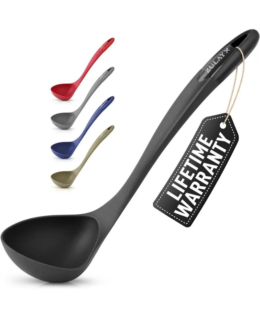 Большая нейлоновая ложка-половник для супа с удобной рукояткой Zulay Kitchen, черный