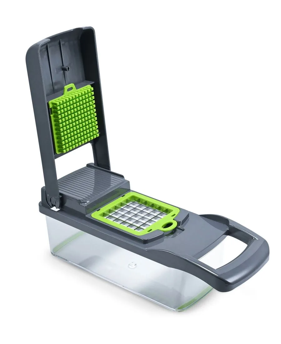 Этот многофункциональный измельчитель и слайсер разработан, чтобы сделать приготовление пищи на кухне проще и приятнее. Он позволяет измельчать, шинковать и нарезать кубиками самые разные овощи и даже фрукты, что делает его универсальным инструментом для всех ваших потребностей в приготовлении еды и многого другого.