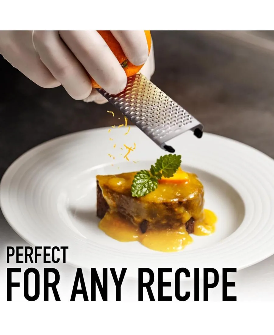 Обновите свой кухонный инвентарь с помощью терки для цедры Zulay Kitchen Zester Grater - универсального и прочного инструмента, предназначенного для легкого натирания, измельчения и шинковки. Добавляете ли вы свежую лимонную цедру в выпечку, натираете твердые сыры на пасту или мелко нарезаете имбирь и мускатный орех для придания насыщенного вкуса, эта ручная терка обеспечит точность и эффективность каждый раз.