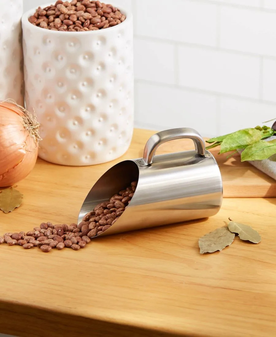 Наша мерная ложка овальной формы объемом полтора стакана идеально подходит для дозирования сухого корма и корма для животных. Ее функциональная конструкция включает петли для подвешивания, обеспечивающие удобное и легкодоступное хранение. Изготовленная из прочной нержавеющей стали 18/8, эта ложка прослужит долго. Можно мыть в посудомоечной машине.
