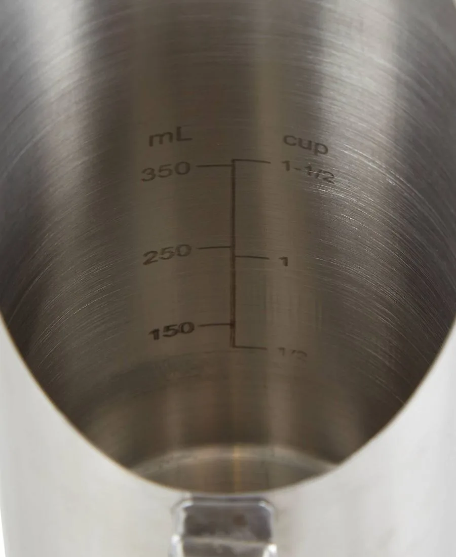 Внутренние отметки позволяют измерять объем как в 1/2 чашки, так и в 100 мл
