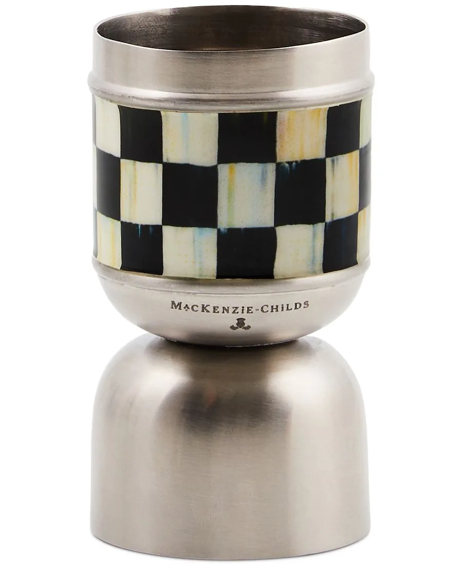 Создайте идеальный коктейль со вкусом, используя культовый мерный стаканчик Mackenzie-Childs 3260 Jigger с фирменным клетчатым узором Courtly Check.