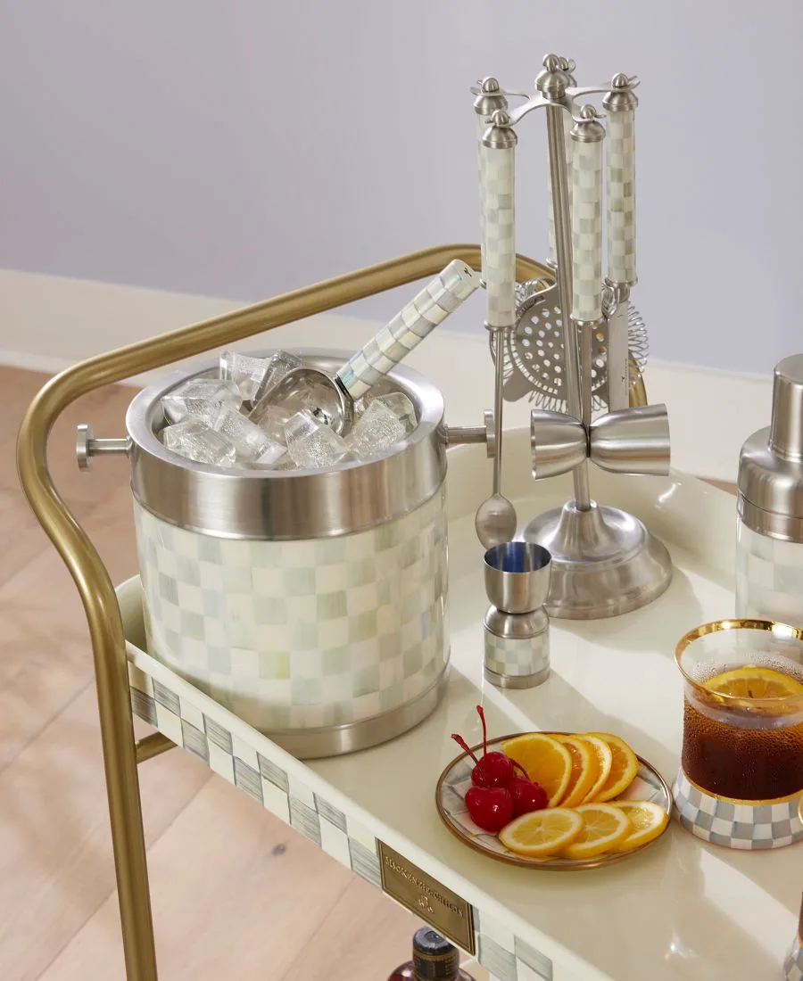Этот удобный мерный стаканчик от Mackenzie-Childs позволит точно отмерять напитки и улучшить вашу коллекцию барных принадлежностей. Расписанный вручную узором Sterling Check на гладкой нержавеющей стали, он непременно станет незаменимым аксессуаром для вечеринок.