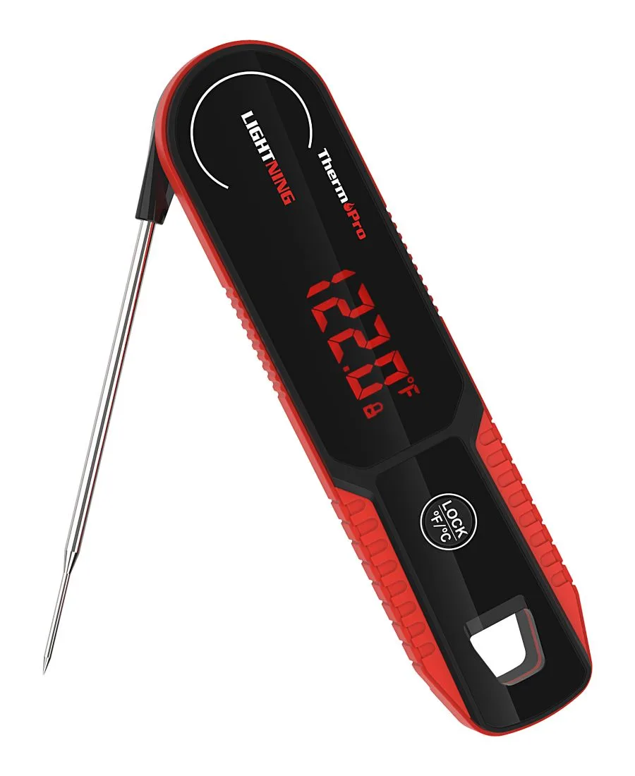 В упаковке 1 термометр для мяса Lightning с мгновенным считыванием показаний за 1 секунду Thermopro, черный/красный