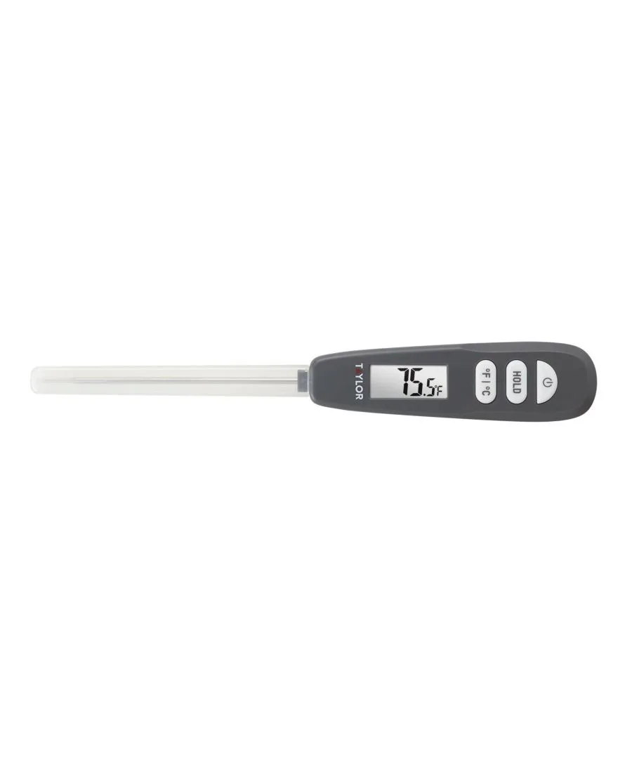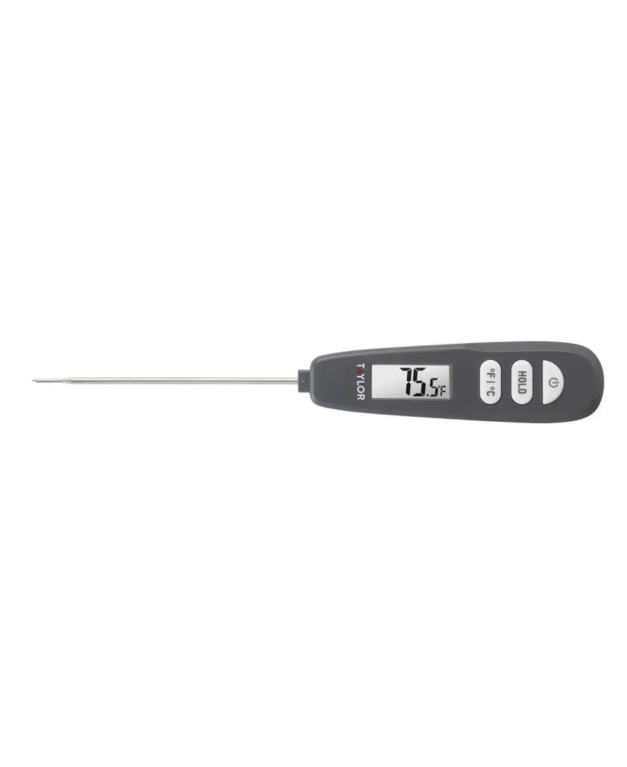 Сверхбыстрая реакция цифрового термометра Taylor позволяет получить стабильные показания температуры за 6 секунд. Ультратонкий наконечник щупа позволяет измерять температуру, не прокалывая слишком много продукта и не позволяя сокам и ароматам испаряться.