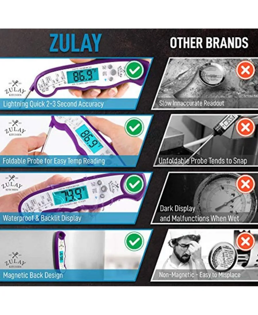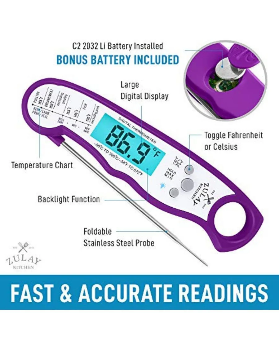 Термометр для продуктов питания мгновенного считывания - водонепроницаемый цифровой термометр для мяса Zulay Kitchen, фиолетовый