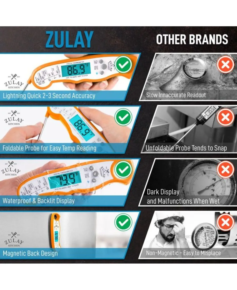 Термометр для продуктов питания мгновенного считывания - водонепроницаемый цифровой термометр для мяса Zulay Kitchen, оранжевый