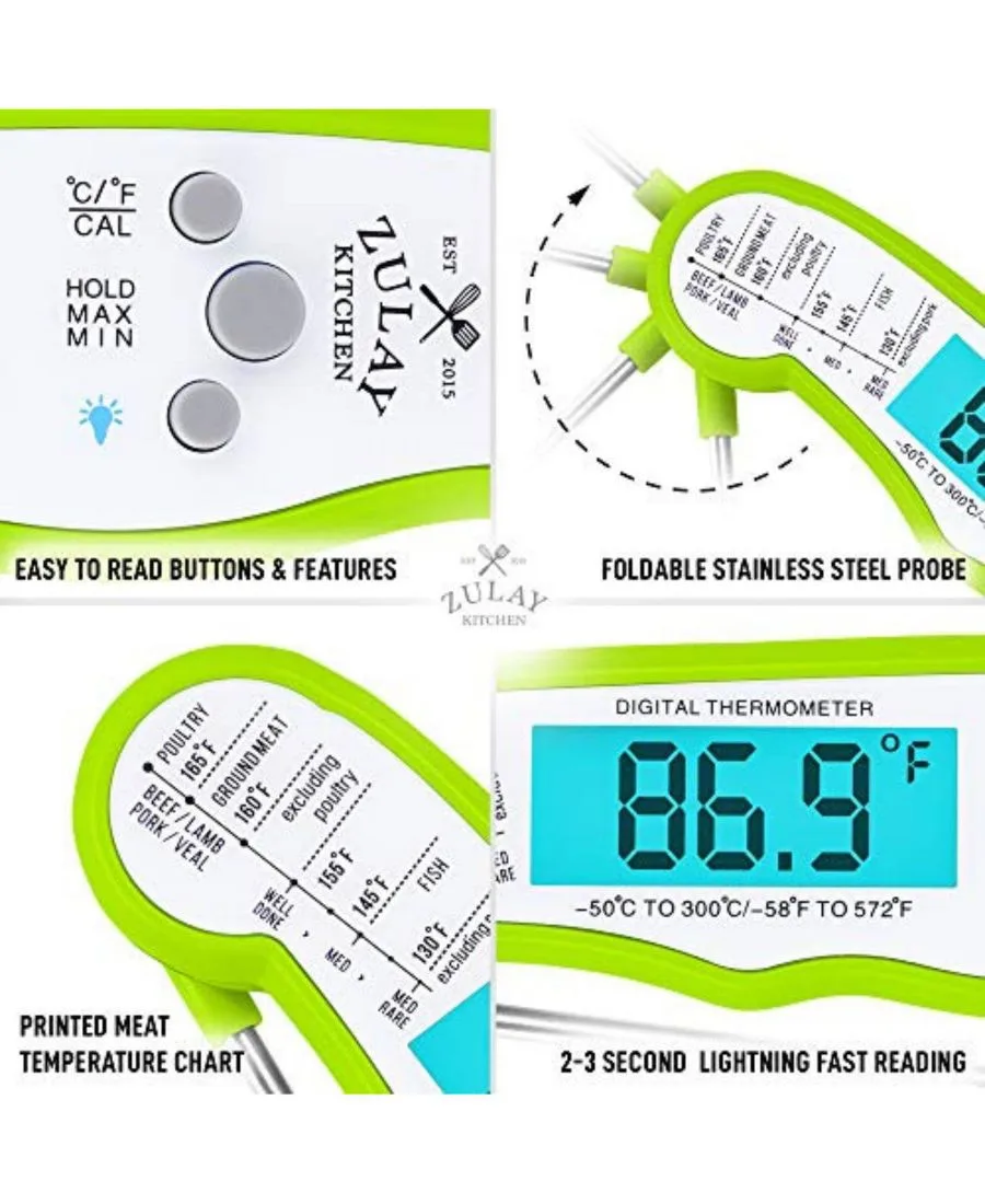 Термометр для продуктов питания мгновенного считывания - водонепроницаемый цифровой термометр для мяса Zulay Kitchen, зеленый