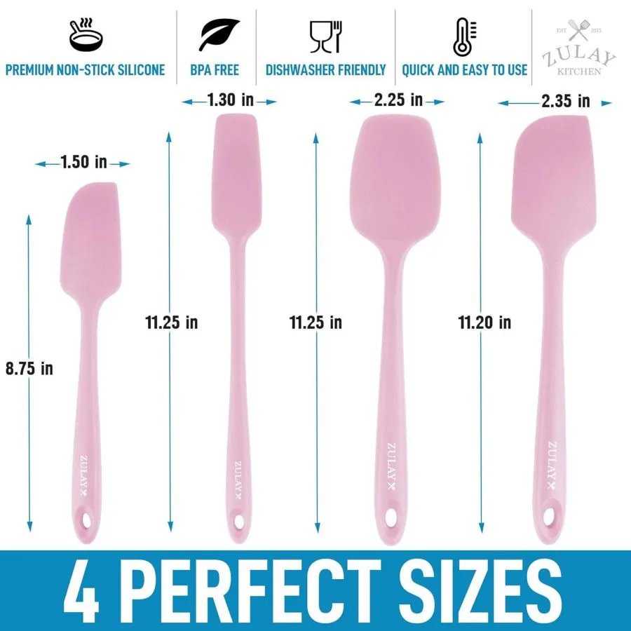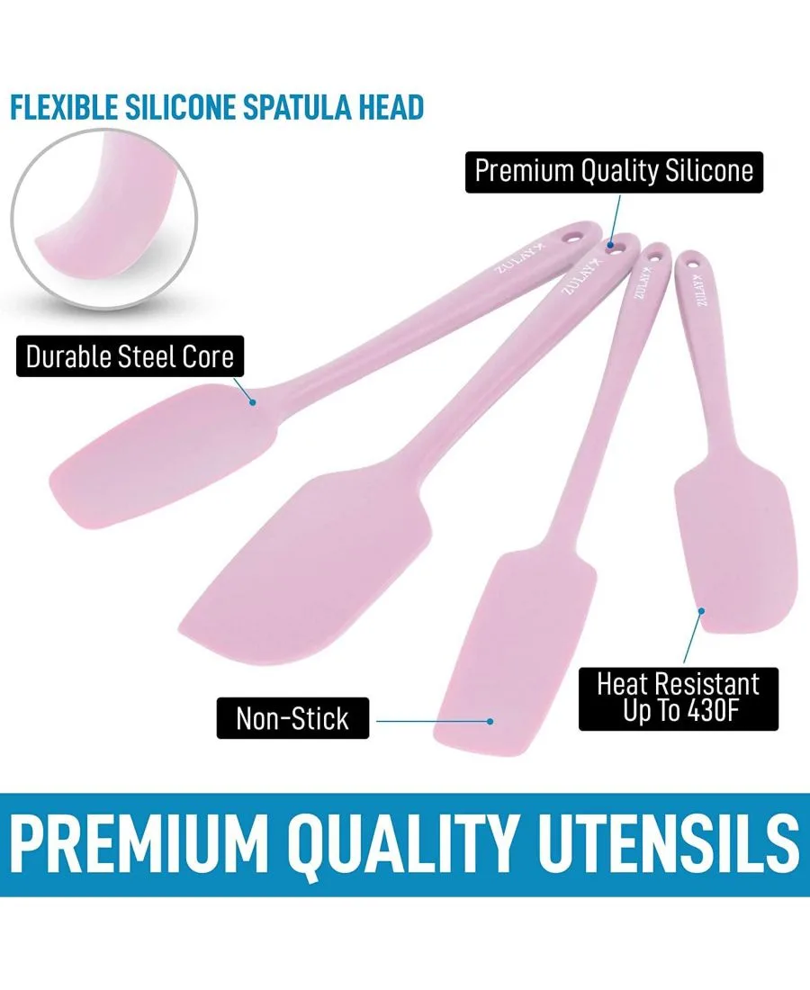 Набор из 4 силиконовых лопаток - термостойкие силиконовые инструменты для приготовления пищи, выпечки и смешивания Zulay Kitchen, розовый