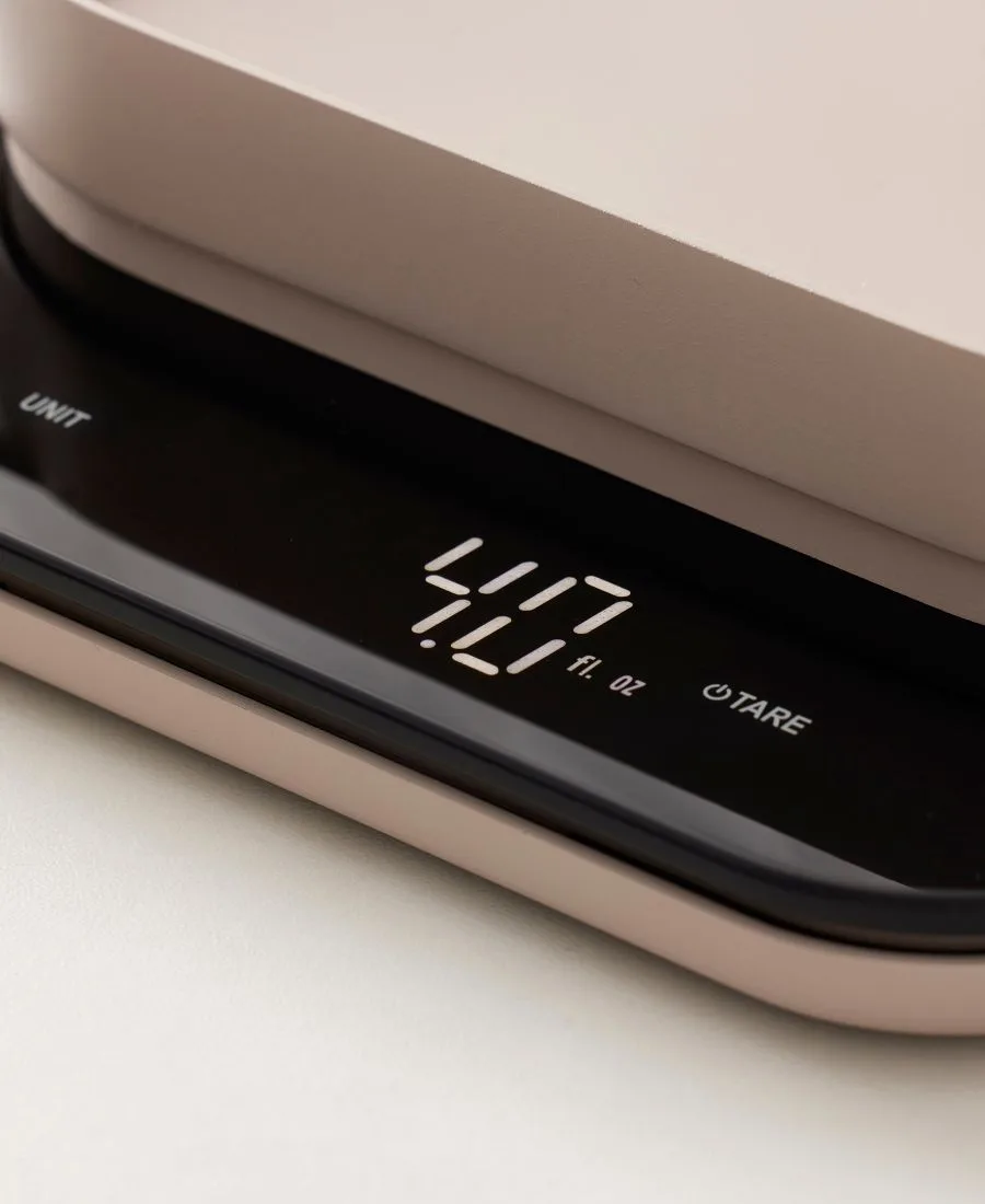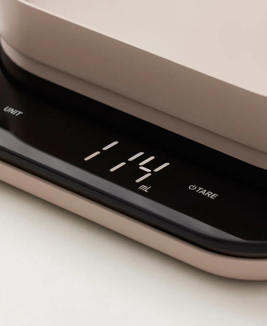 Чаша вмещает 300 мл и служит крышкой, когда весы не используются.