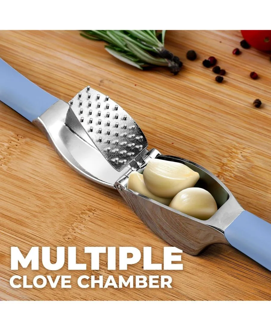 Чеснокоспресс с удобной ручкой, овощечисткой и щеткой Zulay Kitchen, голубой