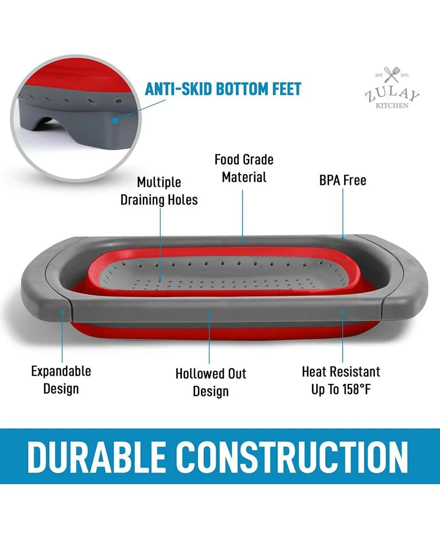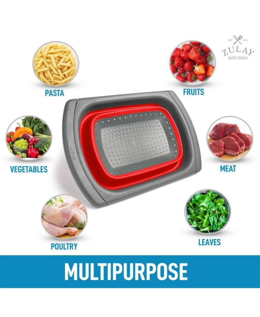 Складной дуршлаг с выдвижными ручками Zulay Kitchen, красный