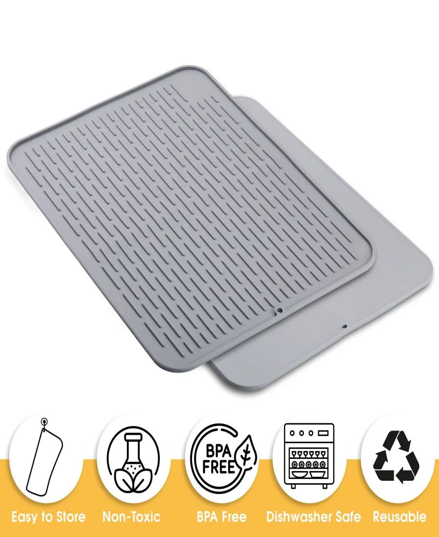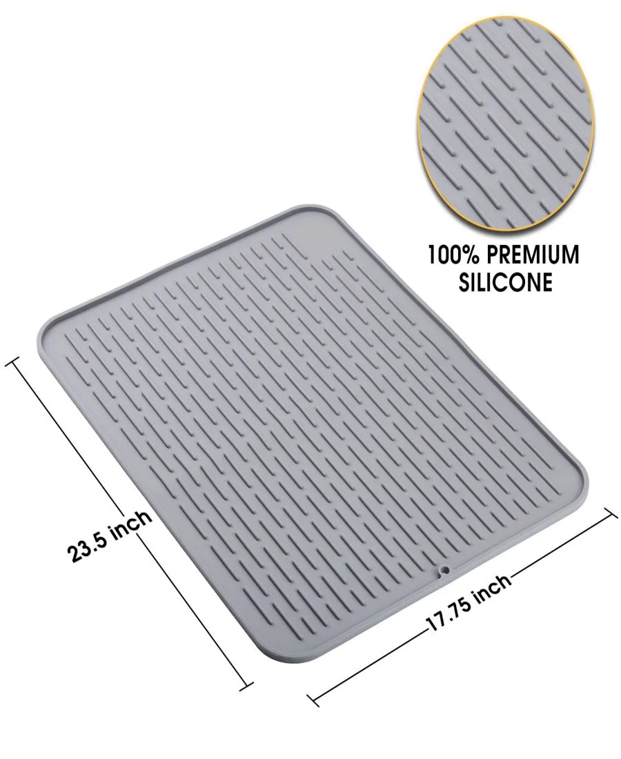 Высокая термостойкость - этот силиконовый коврик для сушки посуды выдерживает температуру до 450 градусов по Фаренгейту или 230 градусов, что позволяет использовать его в качестве подставки для горячих кастрюль и сковородок, чтобы защитить ваши столешницы.