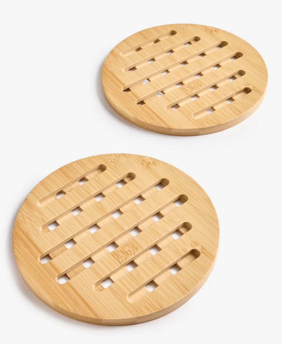 Силиконовые ножки обеспечивают дополнительную защиту этим подставкам под горячее от Arch Studio. Изготовленные из бамбука, они украшены решетчатым узором, который стильно впишется в любую сервировку стола.