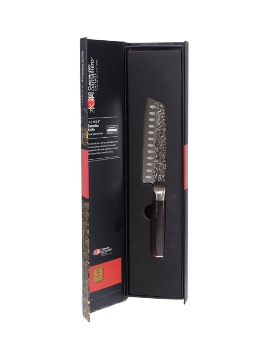 Нож Santoku Cuisine::pro Damashiro Emperor (14 см или 14 см) гарантированно обеспечит вам максимально удобное и быстрое измельчение. Низкий кончик и широкое лезвие делают этот нож лучшим помощником повара для нарезки ломтиками, кубиками и рубки.