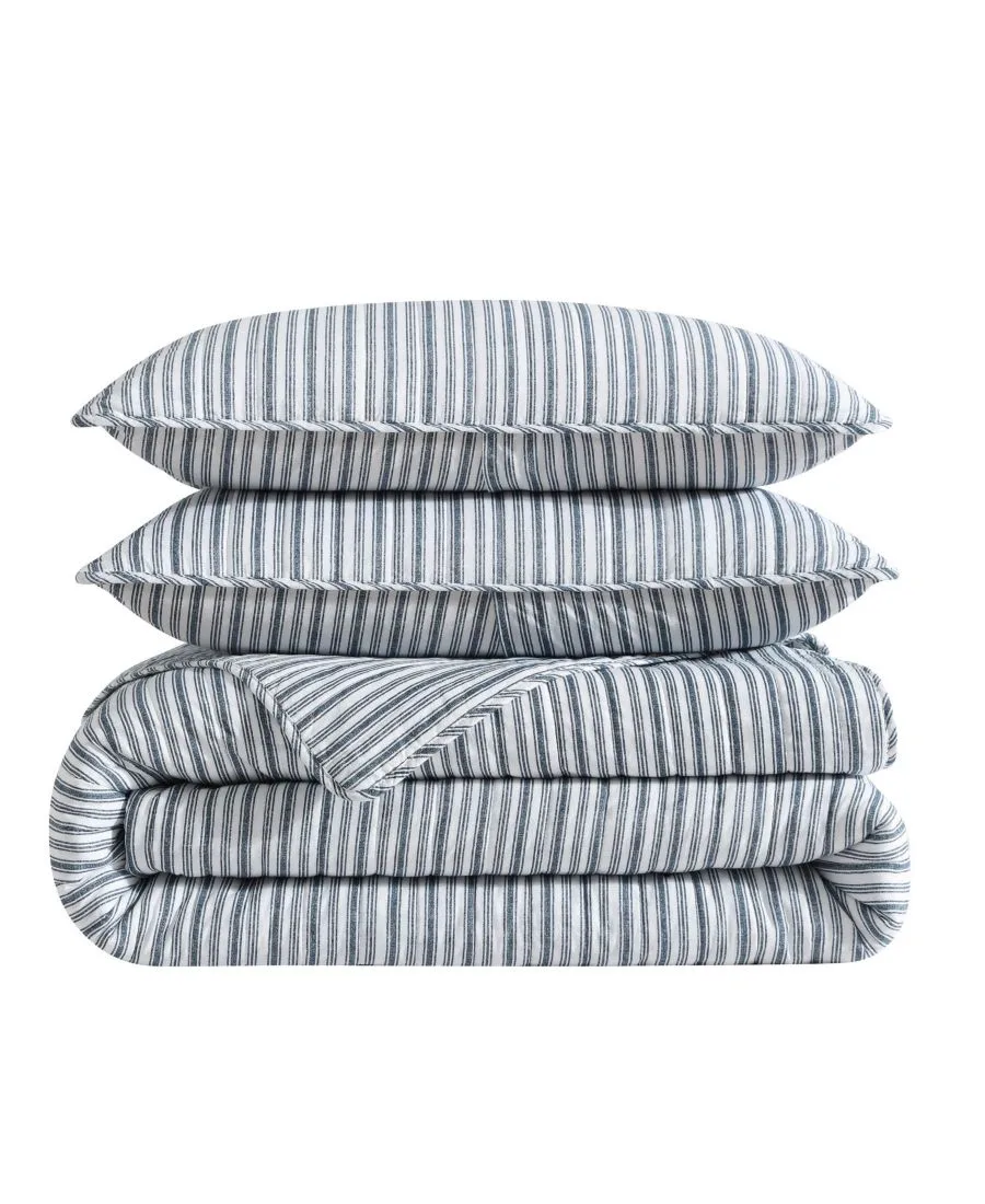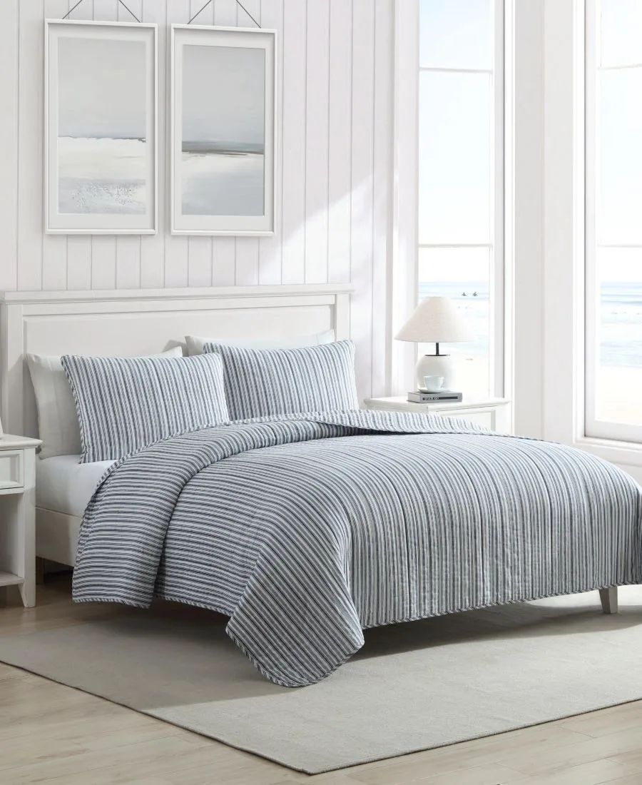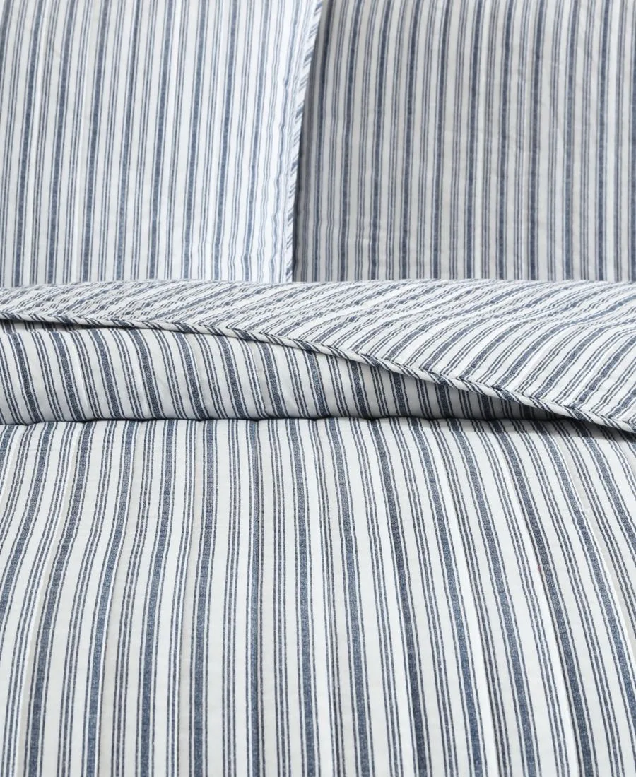 Комплект постельного белья Nautica Coleridge синего цвета отличается классическим узором в тонкую полоску в мягких, нейтральных тонах, создавая чистый и элегантный вид, который дополнит различные стили спальни, от прибрежного и деревенского до современного минимализма. Тонкие, равномерно расположенные полосы добавляют изысканности.