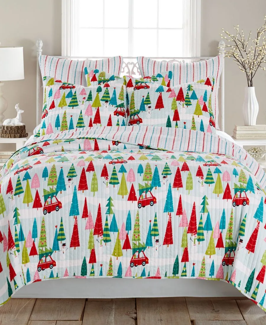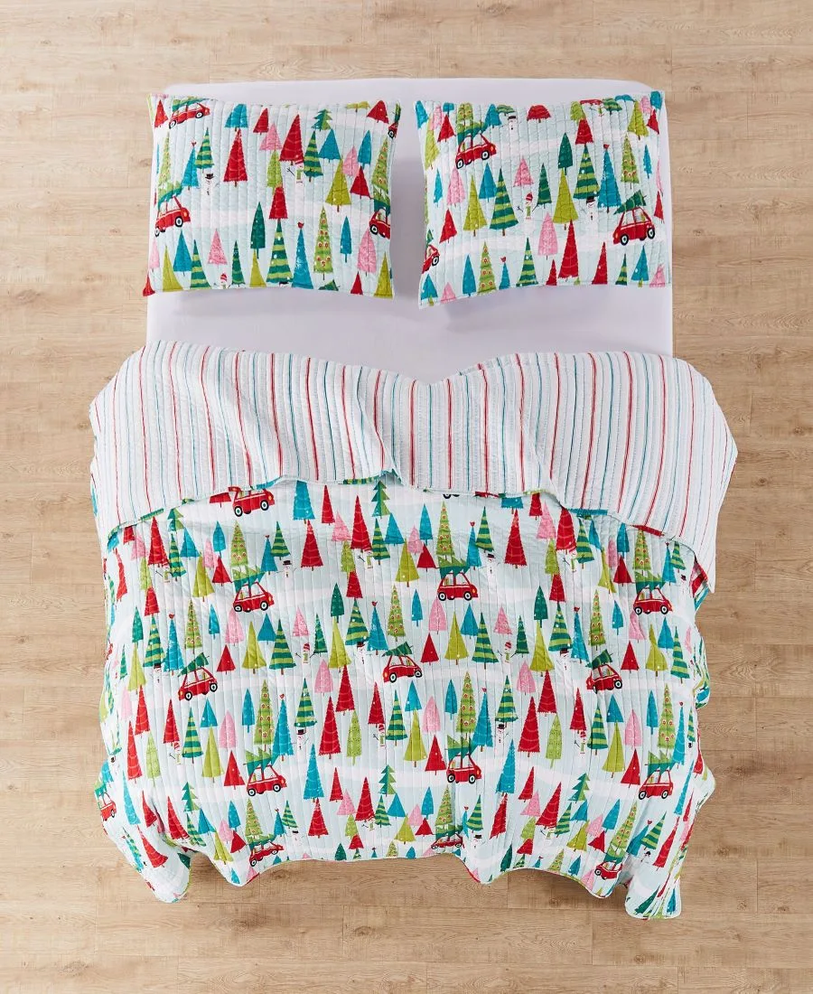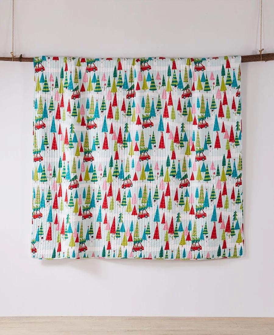 Двустороннее одеяло размера «Holly Jolly» от Levtex Home/Merry Bright вдохновлено теми радостными семейными походами за рождественской елкой. Предлагается в красном, зеленом, бирюзовом и розовом цветах, одеяло можно стирать в машинке. Наслаждайтесь им долгие годы.