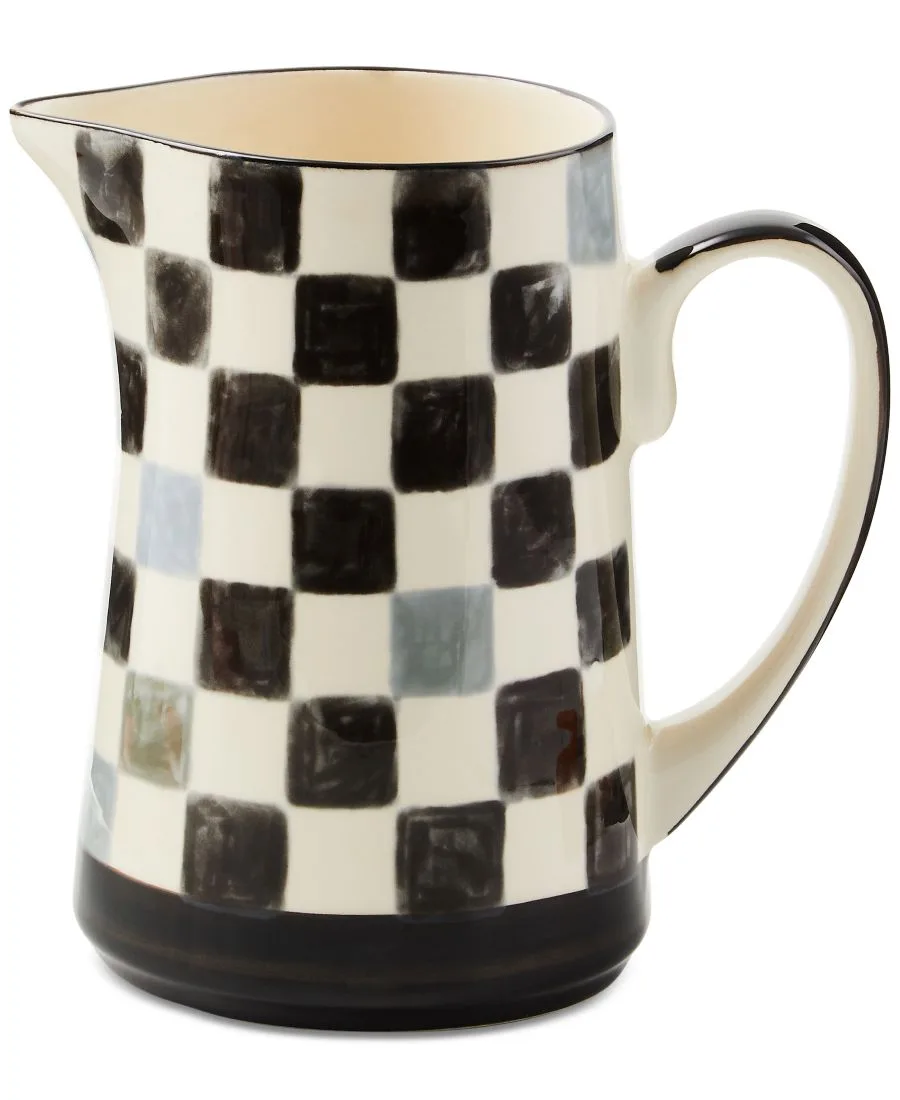 В этой вариации на тему культового клетчатого узора Mackenzie-Childs, стильный кувшин украшен клетками синего, серого и черного цветов.