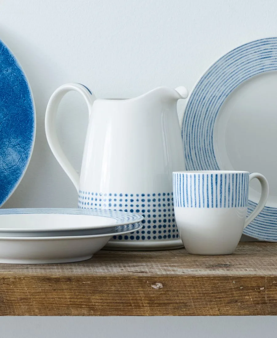 В этом изящном кувшине из коллекции Noritake Blue Hammock Collection вы можете подавать воду, холодный чай или ваш любимый прохладительный напиток. Он выполнен из белого фарфора и украшен рядами бледно-голубых точек.