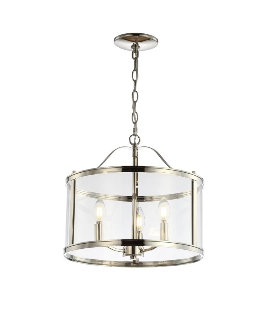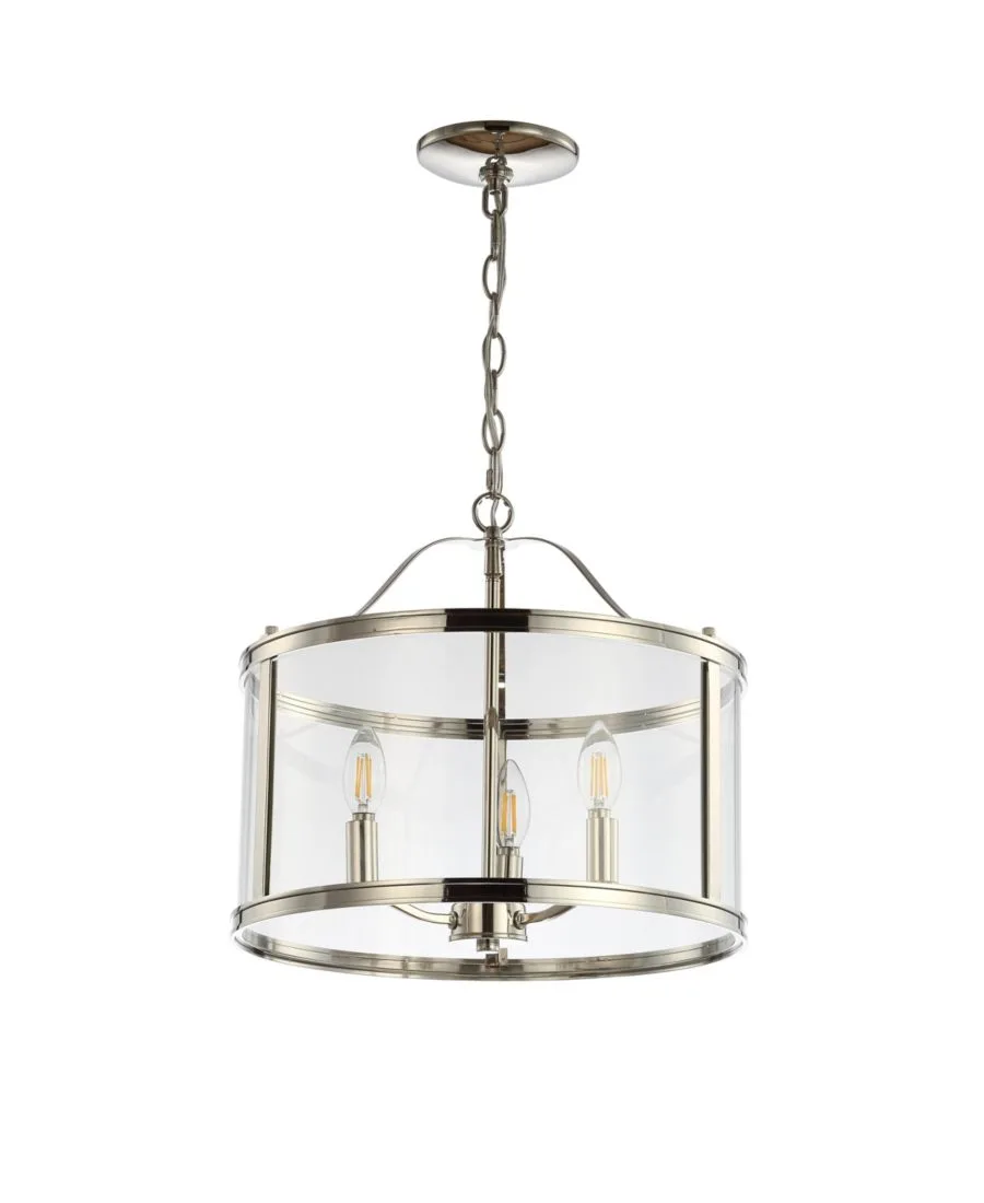 Привнесите современную роскошь в любую гостиную с помощью этого классического подвесного светильника. Изысканный и утонченный, мягкий свет лампочек рассеивается через традиционный прозрачный металлический и стеклянный плафон с блестящей никелированной отделкой. Его универсальный стиль впишется в любой интерьер.