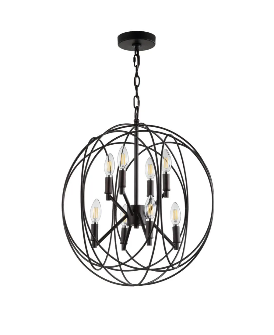 Придайте сияние любой гостиной или прихожей с помощью этого лучистого подвесного светильника в форме шара. Его современный дизайн включает в себя эффектную люстру с 8 плафонами, окруженную великолепной металлической фурнитурой темно-серого цвета с отделкой под железо. Изящные перекрывающиеся сферы мгновенно привлекают к нему внимание.