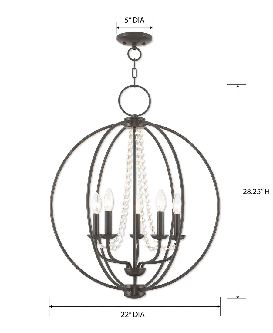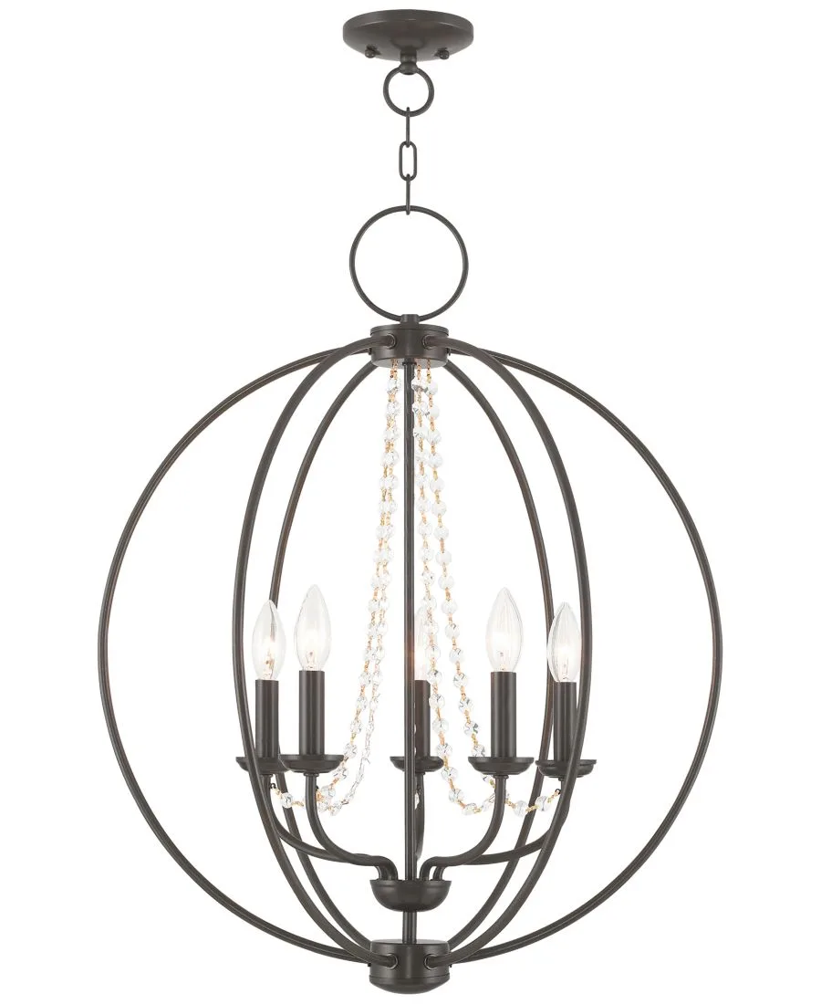 В подвесном светильнике Arabella 56 см от Livex сочетаются традиции и тепло. Изготовленный вручную стальной шар подчеркивает классическое освещение люстры в стиле свечей.