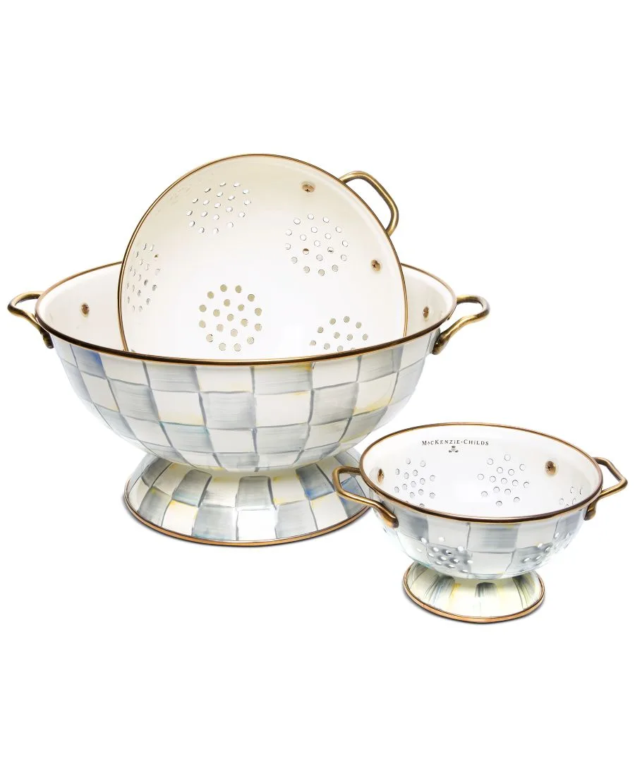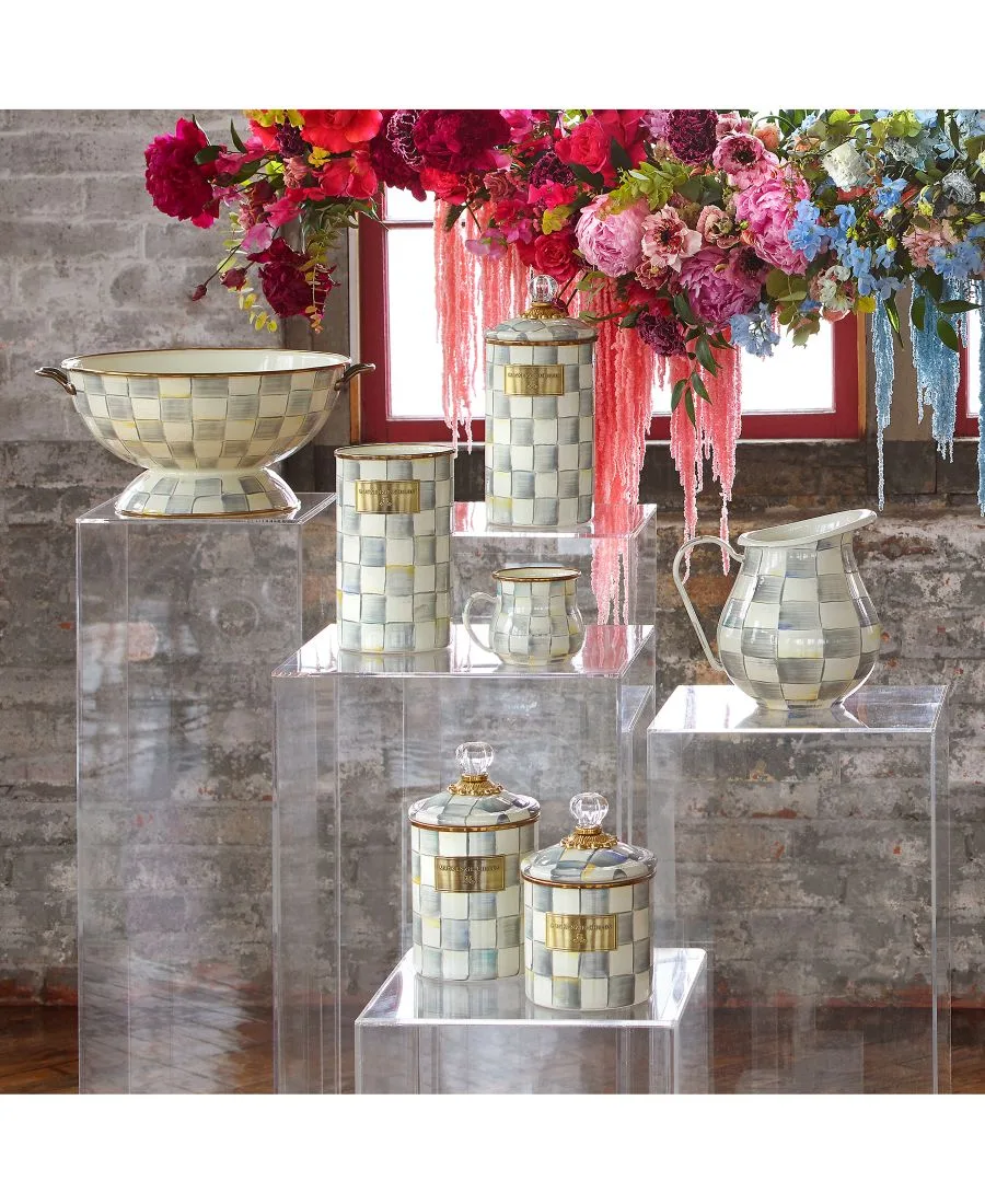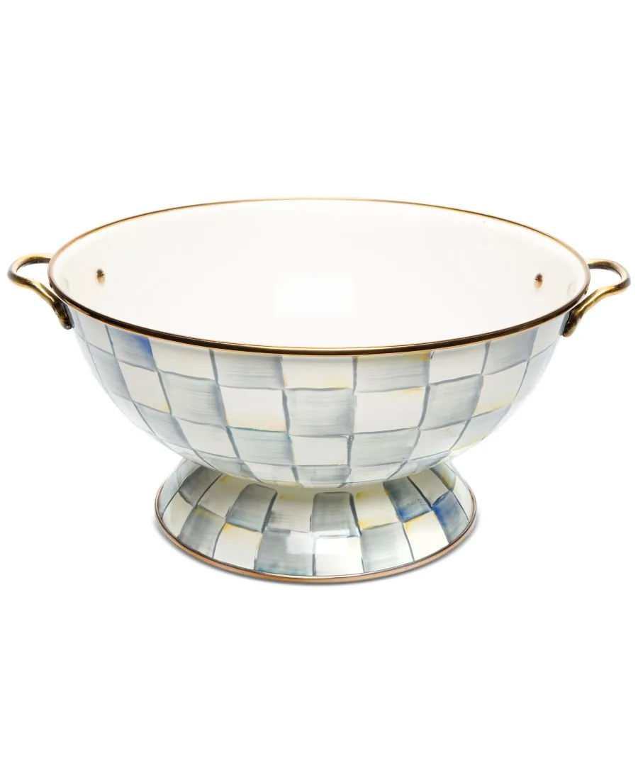 Миска Sterling Check Everything Bowl, идеально подходящая для напитков со льдом или яблок, собранных в саду, - незаменимый аксессуар как для вечеринок, так и для повседневного использования. Изготовленная из толстостенной стали с ручной глазурью, бронзовым ободком из нержавеющей стали и ручками с отделкой под старинную латунь, она украшена расписанным вручную клетчатым узором в оттенках серого.