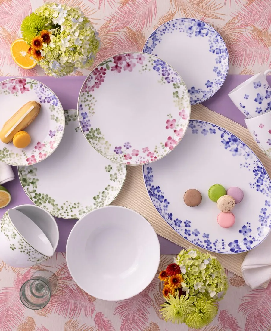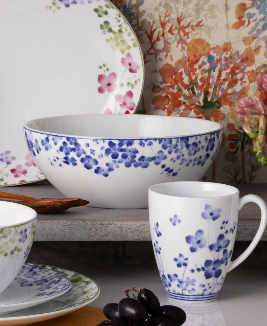 Коллекция Bloomington Road представляет собой интерпретацию цветов кизила и гортензии. Классический элемент цветов дополнен разнообразием оттенков. Коллекция Bloomington Road подходит для повседневного использования и пригодна для использования в микроволновой печи.