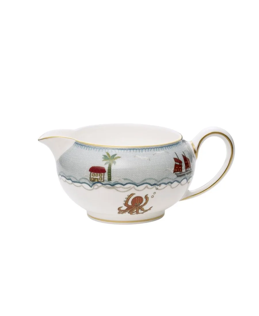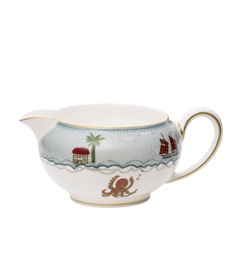 В коллекции Sailor's Farewell, сочетающей любовь Кит Кемп к ремеслу и простому народному искусству в игривой и лирической форме, рассказывается история. Возлюбленная моряка машет на прощание с камня, ее шарф развевается на ветру. В этот момент мотивы на фарфоре изображают приключения моряка в открытом море, как над, так и под водой. Нежная бледно-голубая льняная отделка видна на столовых приборах, а по краю проходит более насыщенная сине-золотая линия. На молочнике Sailor's Farewell объемом 0,2 кг изображен любопытный осьминог, а корабль моряка проходит мимо дома под пальмой на далеком необитаемом острове. Каждое изделие, красиво упакованное в фирменную синюю подарочную коробку Wedgwood, изготовлено в Англии из тонкого костяного фарфора и покрыто 22-каратным золотом.