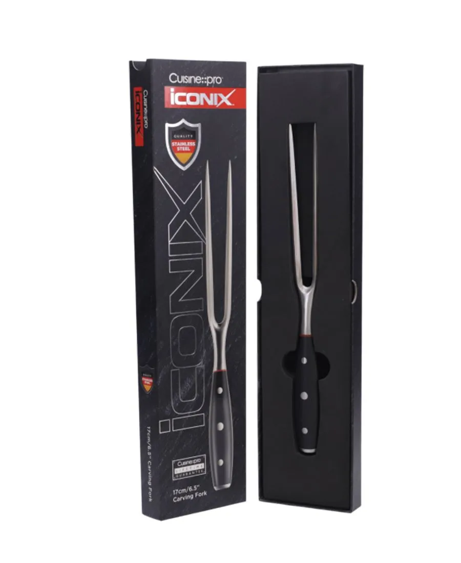 Вилка для нарезки Cuisine::pro IconiX длиной 17 см (17 см) изготовлена методом ковки для обеспечения идеального контроля, веса и баланса, а прочные полимерные ручки обеспечивают удобный хват.