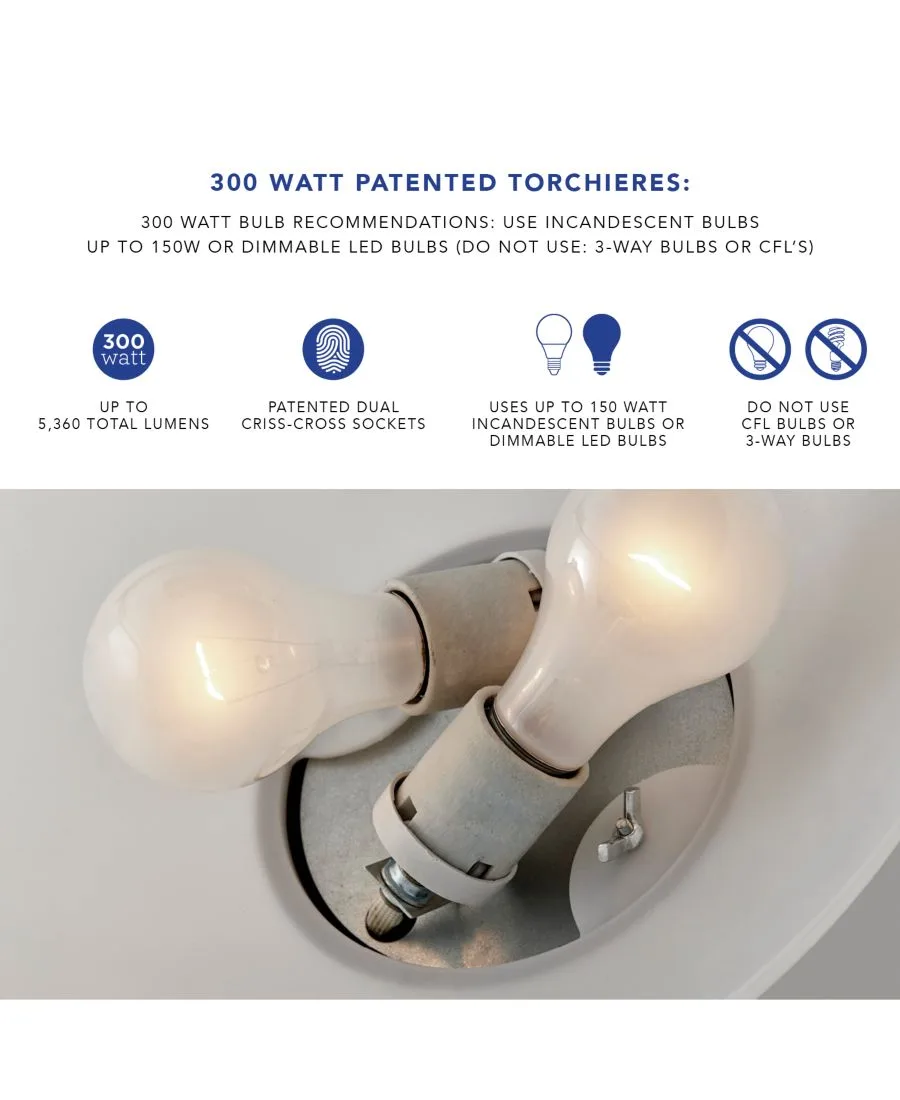 Простота в самом ярком проявлении: торшер Harper обеспечивает обильное рассеянное освещение в тонком корпусе. Минималистичный корпус из сатинированной стали устойчиво закреплен на круглом металлическом основании. Свет мягко рассеивается через белый льняной абажур с матовым рассеивателем. Запатентованная Adesso конструкция с двумя патронами мощностью 300 Вт позволяет использовать два перекрещивающихся патрона, каждый из которых рассчитан на лампы накаливания или светодиодные лампы мощностью 150 Вт, что обеспечивает примерно в 3 раза больше света, чем обычный торшер. Простой поворотный переключатель высокой/низкой яркости расположен на чаше абажура для регулировки яркости. Лампа имеет черный шнур и совместима с умными розетками. Лампы в комплект не входят. Используйте лампы накаливания мощностью до 150 Вт или диммируемые светодиодные лампы (НЕ ИСПОЛЬЗУЙТЕ: трехпозиционные лампы или КЛЛ).