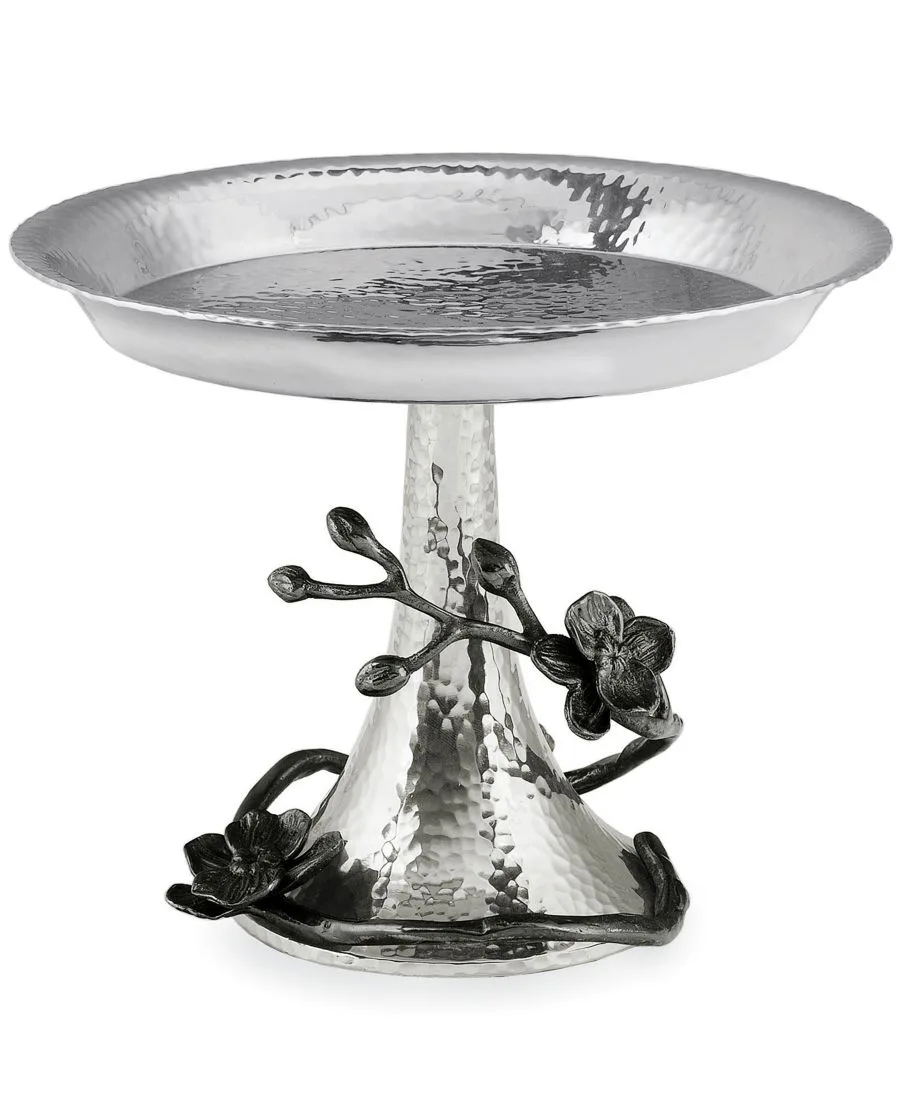 Конфетница Black Orchid, выполненная из блестящей кованой стали и украшенная никелированными цветами, сочетает в себе искусство и функциональность. Эта коллекция посуды и сервировочных блюд вдохновлена замысловатыми формами зелени со всего мира. Дизайнер Майкл Арам неожиданно отводит экзотическим орхидеям мрачную, но изящную роль.